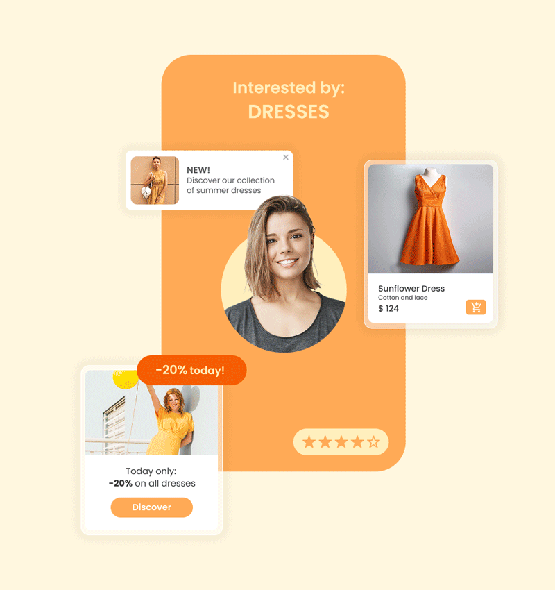 Grâce à la puissance de l'intelligence artificielle et du machine learning, SaleCycle est capable d'analyser en temps réel le comportement de chaque visiteur de votre site et d'adapter le contenu affiché en conséquence. Ainsi, chaque visiteur est en phase avec le contenu qui lui est proposé : il trouve immédiatement les informations et les produits pertinents par rapport à son parcours et à son intention.